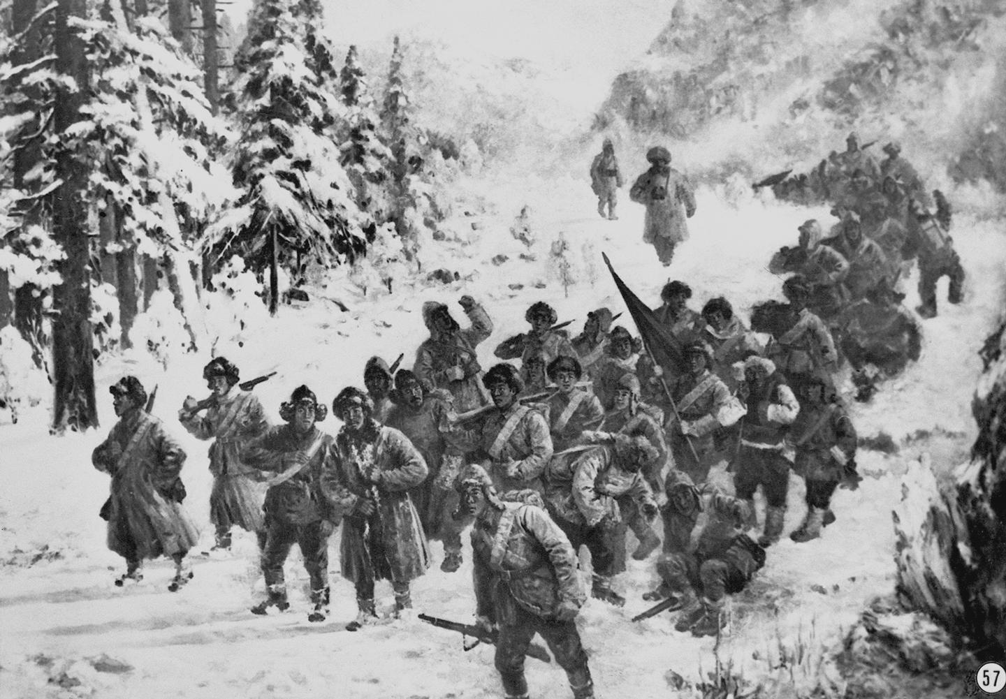 他依旧带领战士们爬冰卧雪、奔袭敌阵